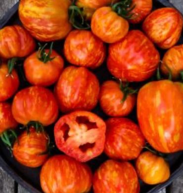 A dazzling sunset-blushed paste tomato with a unique fruit shape, reminiscent of a tulip flower! This flavor is exquisite, thanks to a nice balance of sweetness and richness.